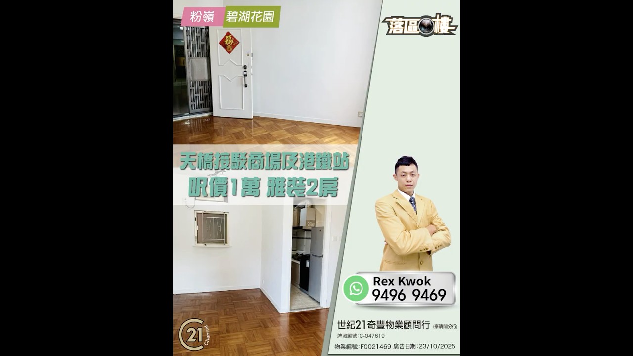 落區睇樓 🏠 樓齡僅4年多,呎價6千多,居二新裝2房,單位保養得宜,可節省一筆裝修費用,即買即入住! 👉🏻 https://url.c21.hk/D0118047 粉嶺 山麗苑 實用面積:376呎 電話號碼:📞9357 1791 ( Mei Chan ) 世紀21奇豐物業顧問行 (花都廣場分行) 牌照編號:C-047619 物業編號:D0118047 廣告日期:03/10/2025 📲whatsapp查詢:https://url.c21.hk/wts #粉嶺 #山麗苑 #居二 #綠表 #白表 #二手樓盤 #落區睇樓 #一手 #二手 #上車 #租務 #世紀21香港 #世紀21 #C21 #Century21 #21channel #21頻道 ---------------------------------------------------- 📍設定「搶先看」樓盤資訊即時收看📍 🔎世紀21香港官網 👉 https://c21.hk/ 📽🖥世紀21香港Facebook👉 https://url.c21.hk/fb 📞聯絡查詢:28697221 🔻讚好🔻訂閱🔻分享🔻LIKE🔻FOLLOW🔻SHARE ---------------------------------------------------- *以上的樓盤資料,由特許經營商提供及擁有,而每辦事處乃獨立擁有及經營(Each CENTURY 21 Office Is Independently Owned and Operated)。由於資料並非實時同步擷取,不確保樓盤廣告能反映樓盤的最新狀態,只僅作參考用途。若有錯漏而引致任何不便及損失,請直接向有關特許經營商或分行查詢,世紀21香港概不負責。