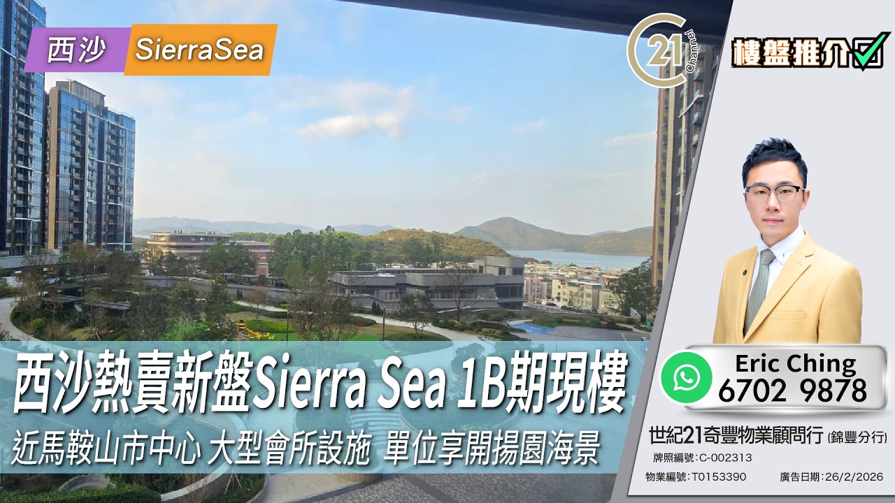 樓盤推介: 西沙熱賣新盤Sierra Sea 1B期現樓 近馬鞍山市中心 大型會所設施 單位享開揚園海景 | 西沙 Sierra Sea 👉🏻 https://url.c21.hk/T0153390 西沙 Sierra Sea 第1B期 實用面積: 571 呎 電話號碼: 6702 9878 (Eric Ching) 世紀21奇豐物業顧問行 (錦豐分行) 牌照編號:C-002313 物業編號:T0153390 廣告日期:26/02/2026 📲whatsapp查詢:https://url.c21.hk/wts #西沙 #馬鞍山 #大埔 #第1B期 #3房 #gopark #綠化景 #實用 #二手樓盤 #落區睇樓 #一手 #二手 #上車 #租務 #世紀21香港 #世紀21 #C21 #Century21 #21channel #21頻道 ---------------------------------------------------- 📍設定「搶先看」樓盤資訊即時收看📍 🔎世紀21香港官網 👉 https://c21.hk/ 🖥世紀21香港Facebook👉 https://url.c21.hk/fb 📞聯絡查詢:28697221 🔻讚好🔻訂閱🔻分享🔻LIKE🔻FOLLOW🔻SHARE ---------------------------------------------------- *以上的樓盤資料,由特許經營商提供及擁有,而每辦事處乃獨立擁有及經營(Each CENTURY 21 Office Is Independently Owned and Operated)。由於資料並非實時同步擷取,不確保樓盤廣告能反映樓盤的最新狀態,只僅作參考用途。若有錯漏而引致任何不便及損失,請直接向有關特許經營商或分行查詢,世紀21香港概不負責。